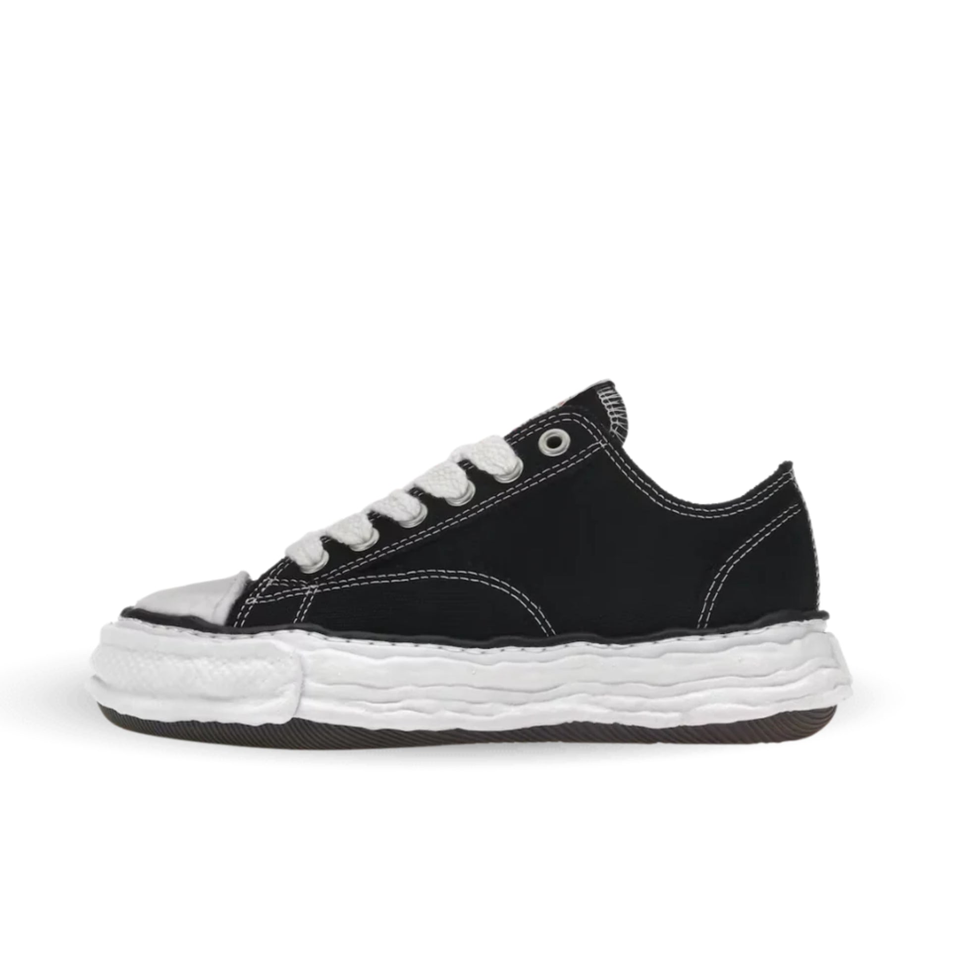 Der Maison Mihara Yasuhiro Peterson 23 OG Sole Canvas Low Black ist ein echter Klassiker innerhalb der Mihara-Kollektion und verbindet zeitlosen Stil mit einem avantgardistischen Twist.
